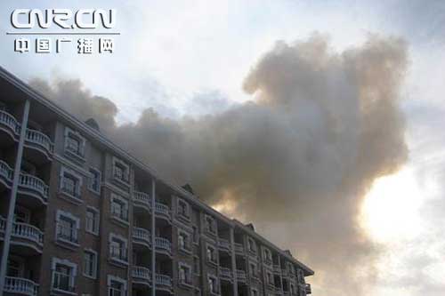 到達新開街后,消防官兵發現陣陣黑煙在上空冒起,在知情人的引導下,消防官兵迅速到達著火樓房,發現著火部位是一棟在建六層樓房的悶頂處,上面火焰夾帶著黑煙不時向外冒出。樓層四周站滿了正在施工的建筑工人。