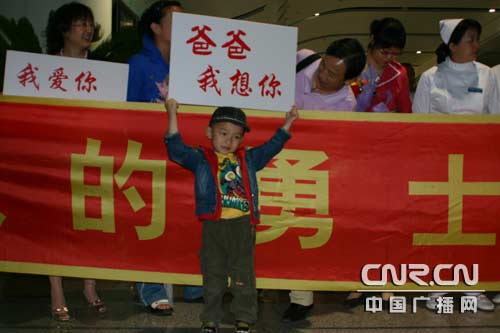 在候機廳內,一位迎接親人的小朋友引起了眾多媒體的注意,據了解,他的父親是本次前往前線的醫療救援隊的隊員,他拿著自己做的牌子,希望能給爸爸一個驚喜。