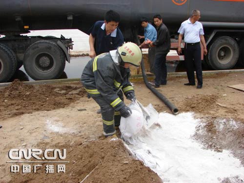 考慮到鹽酸揮發(fā)性大,事故現(xiàn)場(chǎng)刺鼻的氣味讓人淚流滿面,中隊(duì)指揮員及時(shí)根據(jù)現(xiàn)場(chǎng)情況與環(huán)保、安監(jiān)及相關(guān)的工作人員研究處置方案,立即作出部署:一是盡快調(diào)運(yùn)石灰粉覆蓋在泄漏區(qū)域表面,防止揮發(fā)性氣體蔓延;二是及時(shí)協(xié)調(diào)調(diào)派一輛大噸位鹽酸罐車進(jìn)行對(duì)泄漏罐進(jìn)行倒罐;三是加強(qiáng)參戰(zhàn)官兵個(gè)人防護(hù),確保官兵安全。同時(shí),由環(huán)保、安監(jiān)部門對(duì)泄漏區(qū)附近大氣進(jìn)行實(shí)時(shí)監(jiān)測(cè),由公安部門疏散現(xiàn)場(chǎng)圍觀群眾。