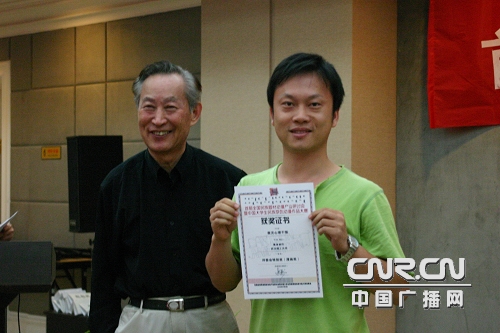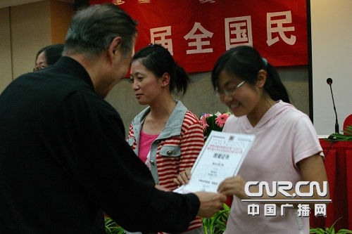 曲建方老人為獲獎(jiǎng)選手頒獎(jiǎng)