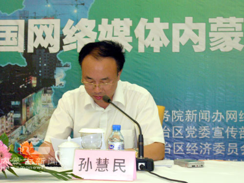 內蒙古自治區政府副秘書長、內蒙古自治區政府新聞發言人孫慧民代表中共內蒙古自治區黨委、內蒙古自治區人民政府,向出席今天活動的中央外宣辦、中央重點新聞網站、兄弟省市重點新聞網站、知名商業網站的各位朋友們表示熱烈的歡迎和誠摯的問候!他指出:近年來,內蒙古自治區全面貫徹落實科學發展觀,抓住國家實施西部大開發和振興東北地區等老工業基地戰略機遇,加快改革開放和現代化建設步伐,經濟社會發展實現了重大跨越。自治區成立60年以來,特別是改革開放30年來,隨著國民經濟的快速發展和綜合經濟實力的逐步增強,人民生活總體上實現了由溫飽向小康的歷史性跨越,并向著建設全面小康社會的宏偉目標邁進。內蒙古已經具備了許多構建和諧社會的有利條件。