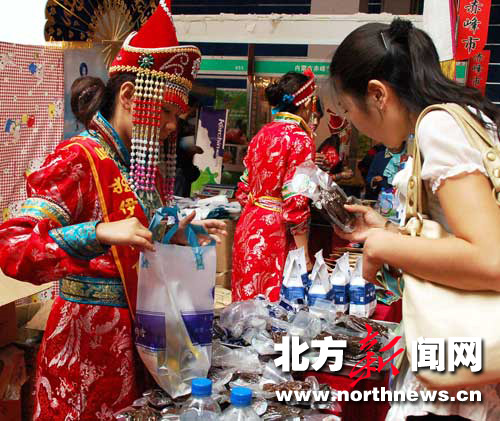 內蒙古展區的工作人員身著蒙古族服飾