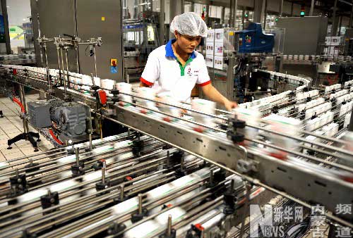 9月25日,伊利金川液態(tài)奶生產(chǎn)線正在生產(chǎn)。 自“問題奶”事件以來,內(nèi)蒙古在堅決打擊非法收售原奶、派質(zhì)檢人員駐企業(yè)監(jiān)督生產(chǎn)的同時,又于9月24日決定從主席預備金中拿出1億元資金,重點支持伊利、蒙牛兩家企業(yè)生產(chǎn),收購奶農(nóng)質(zhì)量合格的鮮奶,以穩(wěn)定奶源基地,保障奶農(nóng)利益。 新華社記者 任軍川攝