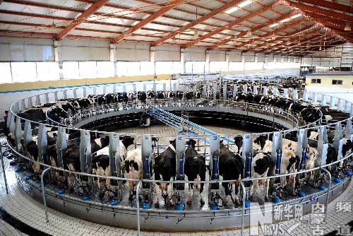 蒙牛現(xiàn)代化的澳亞牧場正在擠奶(9月24日攝)。 新華社記者 任軍川攝