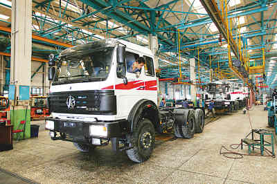 在北奔重汽公司總裝車間,工人們正在緊張地忙碌著。生產線已連續幾個月處于滿負荷狀態,即使一線工人兩班倒,目前收到的訂單也已安排到7月底。作為國內高檔重車的知名品牌,北奔重汽公司已經連續3年保持了快速增長行業之最。