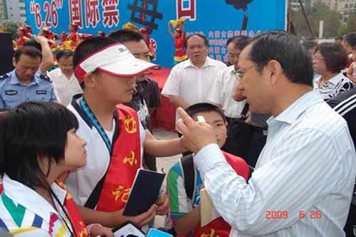 今天在首府新華廣場舉行了“依法禁毒,構(gòu)建和諧”為主題的宣傳活動,目的是為了讓廣大青少年深刻了解禁毒的重大意義,以及毒品對國家、社會和家庭的嚴(yán)重危害,從而在今后的學(xué)習(xí)和工作中能真正做到“真愛生命,拒絕毒品”。