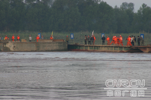 中廣網(wǎng)呼和浩特8月27日消息(記者鄭穎 攝影馬立峰) 8月26日下午15時(shí)41分左右,在托縣黃河?xùn)|營(yíng)段發(fā)生一起機(jī)船與黃河浮橋相撞事故,機(jī)船傾覆,15人全部落入黃河,截至目前已從黃河內(nèi)打撈搜救7人,陸續(xù)送往托縣醫(yī)院及時(shí)進(jìn)行搶救,其中,已有6人脫離危險(xiǎn),1人經(jīng)搶救無(wú)效死亡,其余8人失蹤。由于黃河水流湍急,,給救援工作帶來(lái)很大難度,目前,沉船還沒有打撈出水。今晨5點(diǎn)半,消防救援人員嘗試拆除浮橋打撈沉船。
