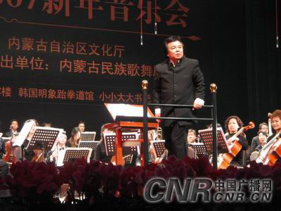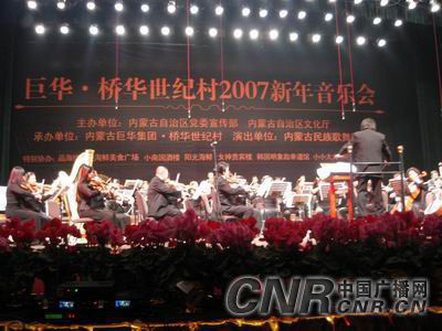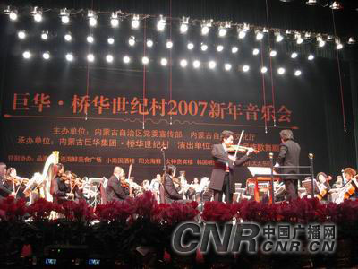 中廣網呼和浩特1月7日消息(記者鄭穎、劉俊霞) 1月6日晚在內蒙古政府禮堂“巨華 橋華世紀村2007年新年音樂會”成功舉辦。國際著名指揮家姜金一先生、國際著名小提琴演奏家呂思清先生攜手內蒙古民族歌舞劇院民族交響樂團為青城觀眾獻上了一道豐盛的音樂大餐!