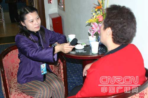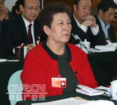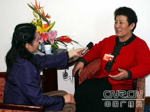 記者武艷玲采訪民族界委員德德瑪 (中廣網(wǎng)記者梓君 攝)