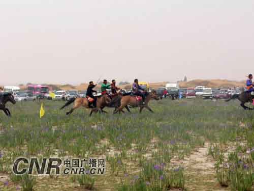中廣網(wǎng)呼和浩特5月22日消息 (記者阿都?xì)J、阿拉善臺記者付惠玲)5月19日,內(nèi)蒙古阿拉善盟旅游局、阿左旗政府和孿井灘生態(tài)移民示范區(qū)管委會在騰格里沙漠南緣的馬蓮湖畔舉行了阿拉善首屆馬蓮湖生態(tài)旅游節(jié),上萬名來自寧夏、甘肅、陜西和內(nèi)蒙古烏海等毗鄰地區(qū)的游客來此觀花賞景,領(lǐng)略大漠風(fēng)情,參加具有民族特色的文體活動。