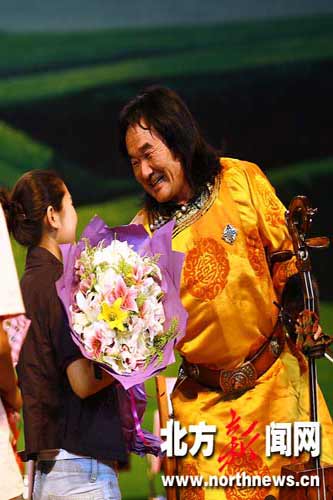 觀眾反響強烈 “真的是太讓人震撼了,能夠欣賞到這樣精彩的演出,我多年的一個愿望終于實現了!痹谶@臺音樂會結束以后,從天津來呼和浩特旅游的董晶激動地對記者說。 今年46歲的董晶出生在錫林郭勒大草原,悠揚的馬頭琴聲伴隨她度過了難忘的童年。8歲的時候,她跟隨父母搬家到了天津。從離開家鄉的那一刻起,她再也沒有聽過馬頭琴聲。38年來,她的心里一直深藏著一個愿望:回到內蒙古,聽那熟悉的馬頭琴聲。董晶告訴記者:“今年,內蒙古自治區迎來了60華誕。我再次踏上了回鄉的路途,并且有機會欣賞到馬頭琴交響音樂會!碑旪R·寶力高拉響馬頭琴深情演奏《尋找》時,董晶流下了眼淚。在悠揚的馬頭琴聲中,她體會到了身在異鄉的草原兒女對內蒙古大草原的深情眷戀。 據了解,在這臺音樂會現場,不少觀眾被馬頭琴聲所折服。當《回想曲》響徹內蒙古烏蘭恰特時,在場的觀眾仿佛被帶到了綠浪滾滾的大草原上,思緒跟隨著琴聲在大草原上肆意馳騁……這臺音樂會贏得觀眾無數次的掌聲和喝彩聲,好評如潮。