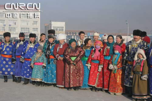 蒙古族冬裝格外鮮艷