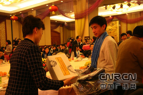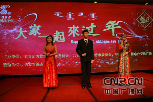 中廣網(wǎng)呼和浩特2月4日消息(記者文偉 通訊員任艷軍) 2月3日(農(nóng)歷臘月二十七)晚上,由內(nèi)蒙古團(tuán)委、呼和浩特團(tuán)委、呼和浩特人廣播電臺(tái)交通頻率聯(lián)合舉辦的“大家一起來過年??青春共建和諧家園,關(guān)愛進(jìn)城務(wù)工青年”活動(dòng)在內(nèi)蒙古飯店隆舉行。來自呼和浩特市的200余名進(jìn)城務(wù)工青年代表出席了活動(dòng),其中包括40多位來自湖南、湖北、安徽、云南、廣東、江蘇等地因雪災(zāi)無法返鄉(xiāng)的打工者。