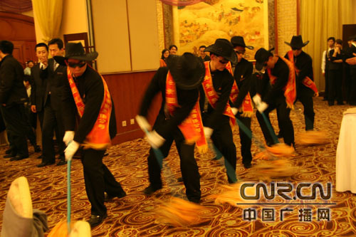 飯店工作人員為外來務(wù)工人員送上精彩舞蹈