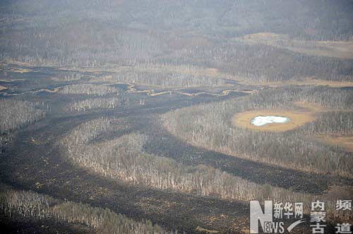 這是航拍的內蒙古大興安嶺森林草原過火區(4月21日攝) 新華社記者張領攝
