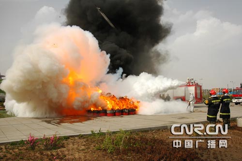 在隨后進行的崗位練兵及滅火演習中,消防官兵表演了佩戴空氣呼吸器、穿著消防戰斗服、氣壓脈沖噴霧水槍滅火、動力圓盤鋸和鏈鋸破門、體能訓練、油料火撲救等精彩項目,不但贏得了臺上領導的陣陣掌聲,也使前來觀看的群眾大開眼界。