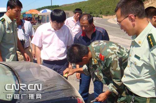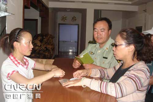 邊防官兵正在幫助臺(tái)灣游客聯(lián)系外事賓館