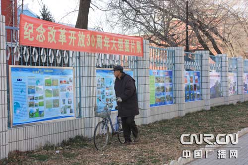 中廣網呼和浩特11月5日消息(記者鄭穎 通訊員紀明國)為紀念改革開放30周年,11月4日,扎蘭屯市“紀念改革開放30周年”大型露天圖片展在幼兒師范學校門前展出,吸引了眾多市民駐足觀看。