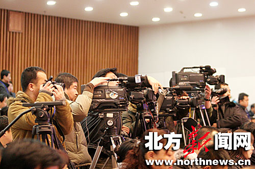 8日上午,內蒙古自治區十一屆人大二次會議在內蒙古人民會堂隆重開幕。區內外20多家媒體的記者云集于此,報道大會盛況。攝影/孫慧