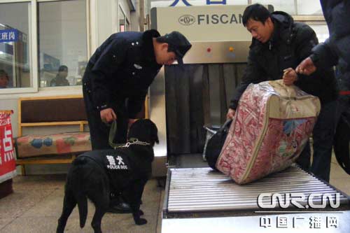 中廣網(wǎng)呼和浩特1月16日消息(記者鄭穎 通訊員周軍)春運(yùn)期間,包頭鐵路公安處全面強(qiáng)化查危、防火、防爆工作,加強(qiáng)對車站周邊與地方結(jié)合部的巡查,尤其是包東、包頭等較大客運(yùn)站派出所對站前廣場及周邊地區(qū)使用防爆犬公開巡邏,確保安全穩(wěn)定。