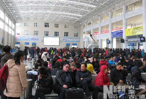 2月13日,旅客因大雪滯留在赤峰汽車站。2月12日夜至13日晨,內(nèi)蒙古赤峰市降下中雪,有效緩解了旱情。降雪也造成赤峰汽車站400多輛客車停運(yùn),4000多名旅客滯留。 新華社發(fā)(李富 攝)