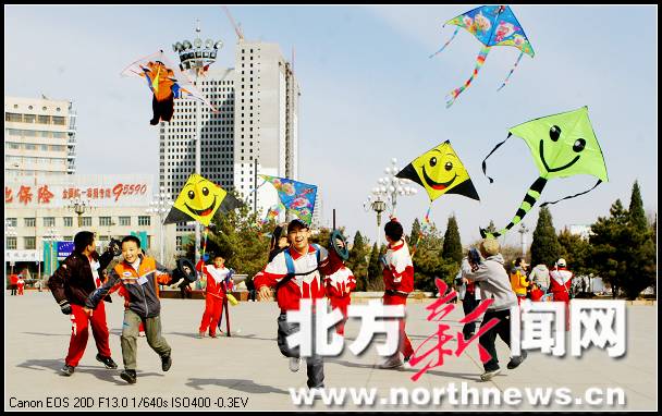 在3月25日舉行的風(fēng)箏比賽上,小學(xué)生們開心地放飛風(fēng)箏。“紙鳶上青天,一去三千尺。”沐浴著春風(fēng),包頭市昆區(qū)包鋼實驗一小在阿爾丁廣場舉行了放飛夢想風(fēng)箏比賽,600多名小學(xué)生在春天的懷抱中放飛了夢想。(周蕾)