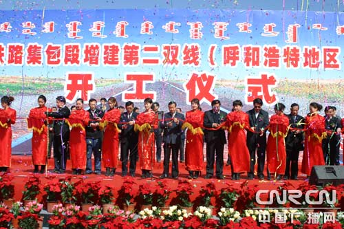 中廣網呼和浩特3月27日消息(記者那森寶音、劉俊霞 攝影馬立峰)3月27日上午,京包鐵路集寧至包頭段增建第二雙線(呼和浩特地區)工程開工儀式在呼和浩特市玉泉區小黑河鎮舉行,拉開了京包鐵路集寧至包頭段增建第二雙線(呼和浩特地區)工程建設的序幕。