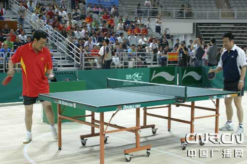 在上午的開幕式上,呼和浩特市市長湯愛軍與前世界乒乓球冠軍郭躍華打了場友誼賽,共同為本屆比賽開球。湯市長說:“希望通過本次乒乓球比賽,促進(jìn)各省市之間的交流和發(fā)展。同時(shí),也希望通過這次比賽能夠起到全民健身的帶頭作用,提高市民們加強(qiáng)體育鍛煉的意識。”