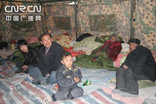 群眾:剛一出來冷,昨天晚上就不冷了,政府把帳篷搭上了。