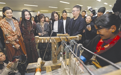 記者在現場,看到了融入朋克文化的長裙,以流行材料pvc為衣料做成的嘻哈外套,也看到了由苗族貼布拼接而成的服裝,精致的蜀錦蜀繡。國際文化在展廳里碰撞,搖滾等先鋒時尚與各種傳統中國文化共聚一堂。這也是此次展覽想要傳達的充滿真情實感的時裝文化。
