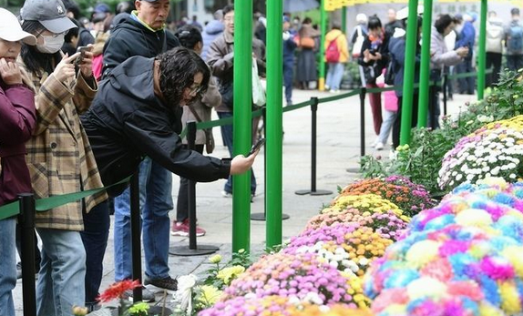 秋日的青島中山公園,被萬千菊花織成了斑斕畫卷。