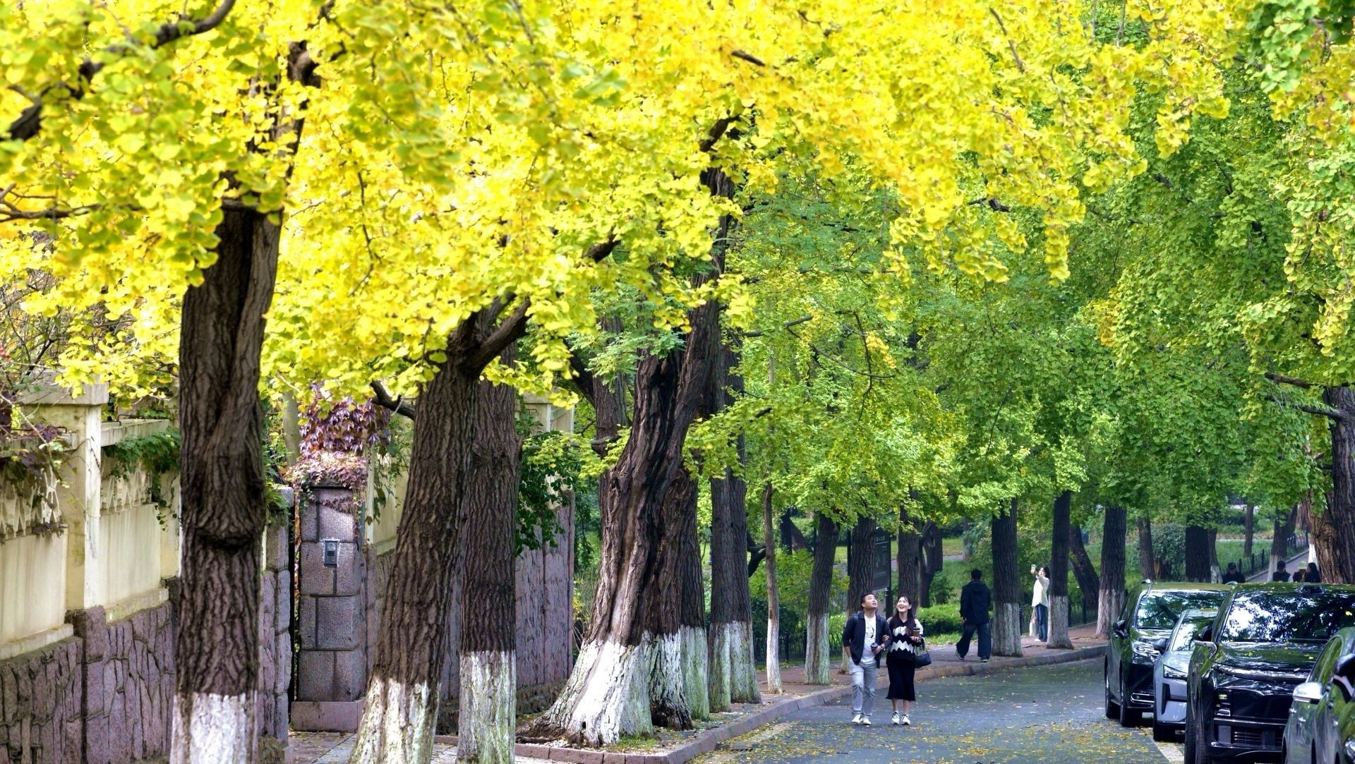 醉美金秋來了!雨后八大關落葉鋪滿地
