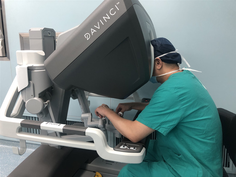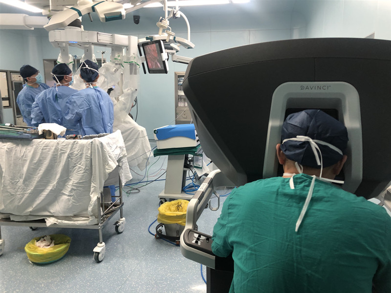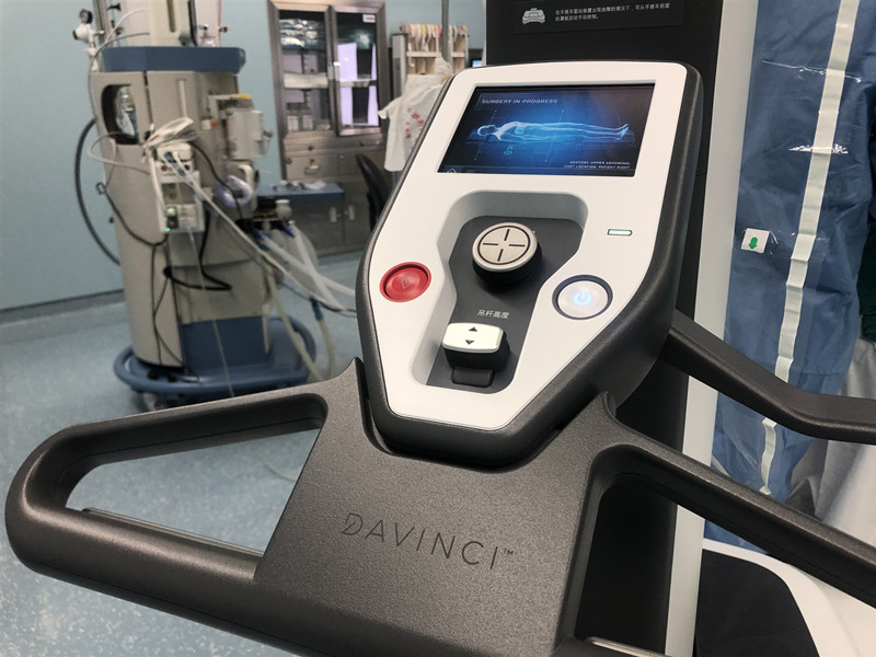 而它的一舉一動,都在主刀醫生鄒奇飛的操控之下。離手術臺一米遠的地方,鄒奇飛正通過操作平臺操控著這臺第四代達芬奇手術機器人。手術耗時約2個小時,這也是嘉定首例由第四代達芬奇手術機器人輔助實施的真正意義上的智能化手術。