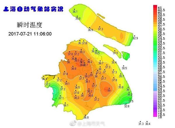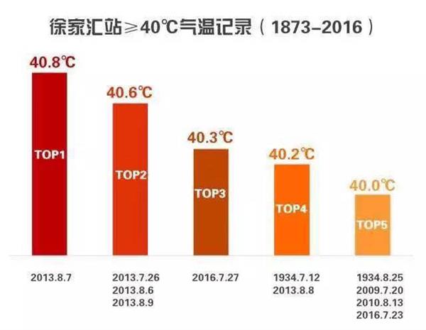 繼上海連續多日的發布高溫橙色預警之后,今天中午12時22分,上海中心氣象臺發布高溫紅色預警信號,截至13時,申城中心城區(徐家匯站)達到40℃,打破本月14日創下的今年最高溫(39.7℃)紀錄。下午2點左右氣溫已經達到40.9度,突破2013年40.8度的歷史紀錄!也打破了徐家匯氣象觀測站145年紀錄!氣象部門表示高溫紅色預警的標準是:24小時內最高氣溫將升至40℃以上。在室外站幾分鐘,汗滴是迅速往下滴啊,真正的桑拿天。未來,申城“高燒”起碼還有5天。
