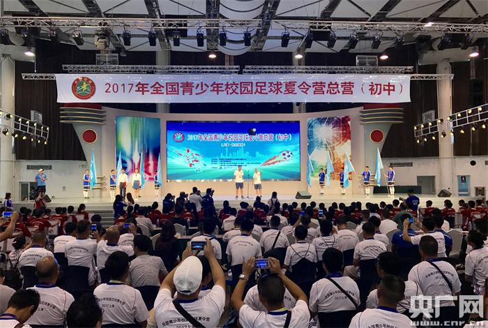2017年全國青少年校園足球夏令營總營(初中)今天上午在上海東方綠舟舉行開營儀式,旨在錘煉優秀足球后備人才,推動校園體育向前發展。教育部體育衛生與藝術教育司司長、全國青少年校園足球工作領導小組辦公室主任王登峰,阿迪達斯足球事業部高級經理馬克斯米利安·斯特羅伯爾,以及專家、領隊、教練員、裁判員等出席開營儀式。
