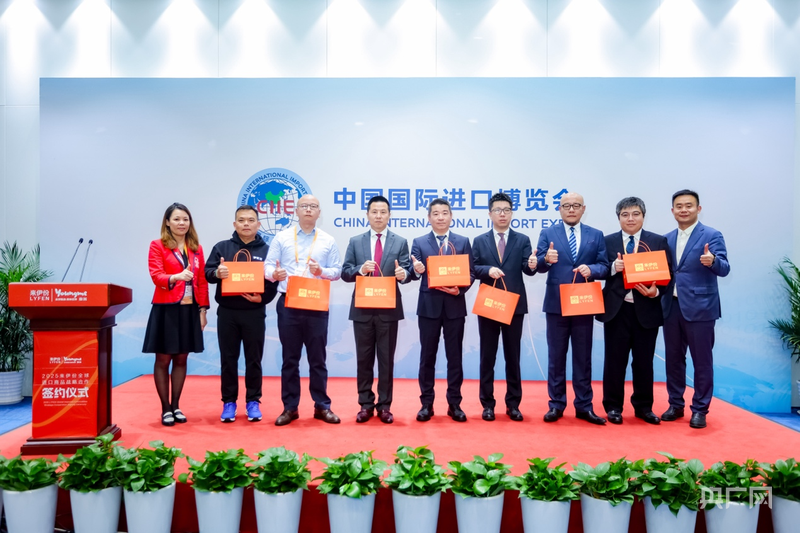 本屆進博會上,來伊份全球進口戰略合作簽約儀式合影現場 (央廣網發 受訪方供圖)