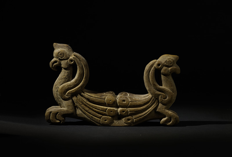 木雕連體雙鳥紋飾構件