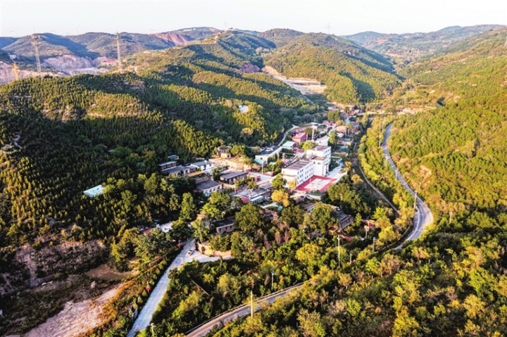 11月4日,雖然已是深秋,但落日余暉中的山西太原東山董家莊村依然郁郁蔥蔥,生機盎然。近年來,太原市堅持綠水青山就是金山銀山的理念,持續開展大規模國土綠化行動,形成了綠帶環繞、森林圍城的綠色生態系統。(記者王韻菲)