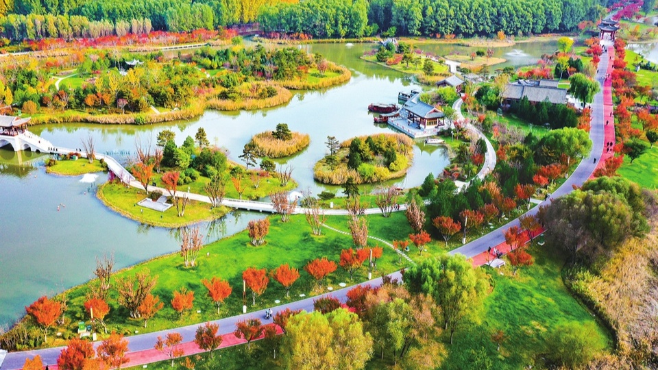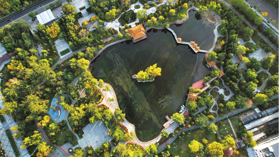 陽泉市中心公園疊翠流金、湖橋映景,彰顯“煤鐵之鄉(xiāng)”生態(tài)優(yōu)先的宜居底色。