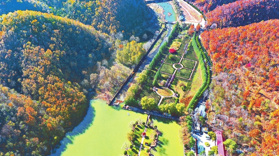 時至深秋,垣曲縣望仙大峽谷內(nèi),碧綠的湖水與滿山紅葉相映襯。