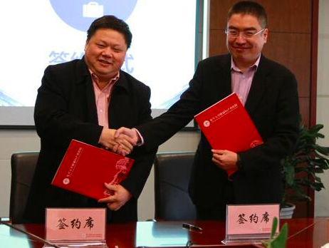 復(fù)旦大學(xué)附屬婦產(chǎn)科醫(yī)院院長(zhǎng)徐叢劍(左)和騰訊互聯(lián)網(wǎng)+副總裁張巍(右)簽署合作協(xié)議