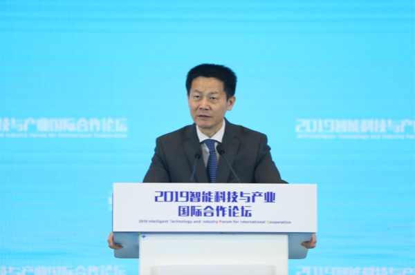 11月6日,上海市委常委、副市長吳清在2019智能科技與產業國際合作論壇上致辭。(舉辦方供圖)