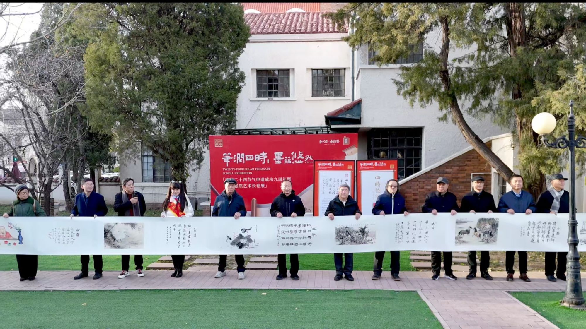 11月30日,由29位天津知名書畫藝術家歷時一年創作的51米“致節氣——四時悠然書畫藝術長卷”在五大道潤園首次亮相,