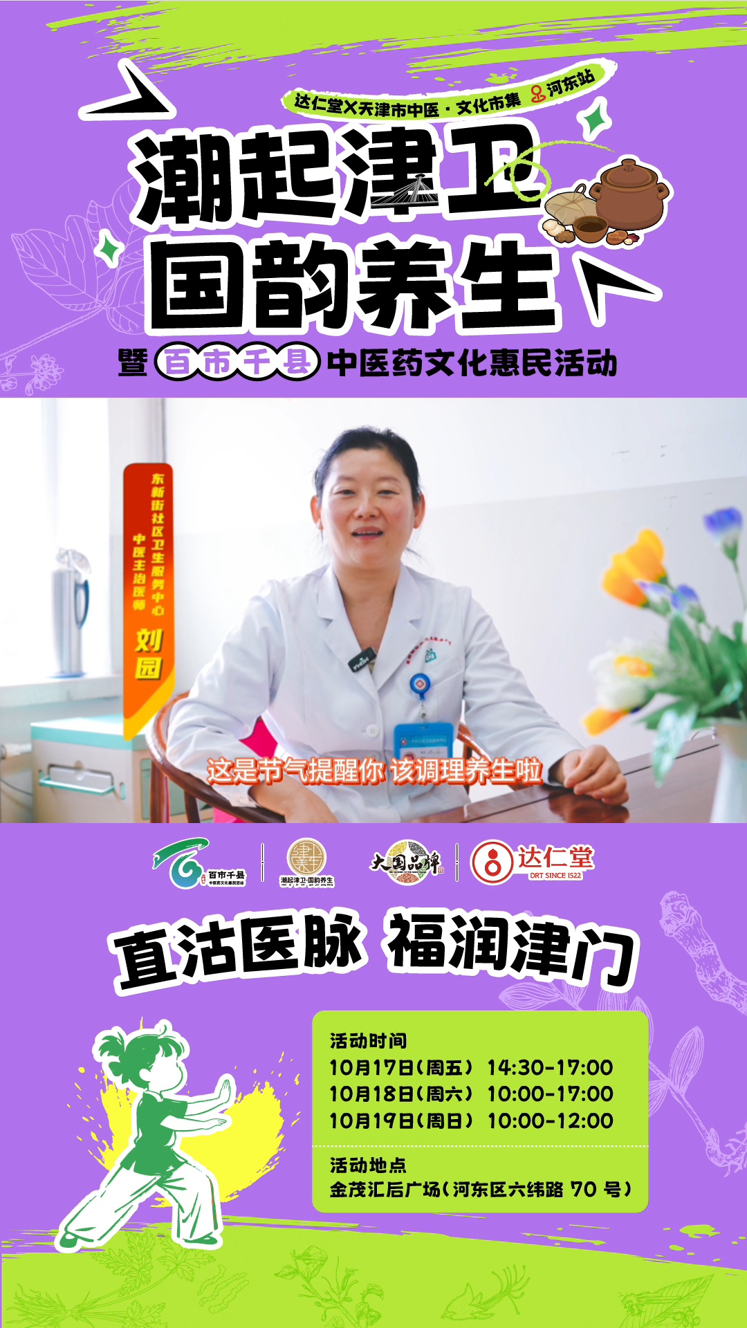 10月17日至19日,由津藥達仁堂獨家總冠名的“潮起津衛·國韻養生”天津市中醫文化市集河東站將隆重舉行。