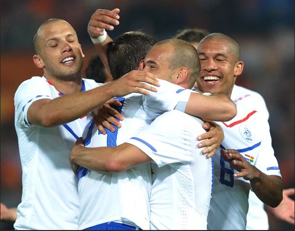 中廣網北京6月2日消息 北京時間6月2日,2010南非世界杯參賽球隊繼續展開熱身。坐鎮主場PSV球場的荷蘭隊依靠庫伊特、范德法特、斯內德和范佩西的各一粒入球,4-1橫掃加納,從而在最近18場國際A級賽事13勝5平不敗,進而創造了荷蘭隊歷史最長不敗紀錄。