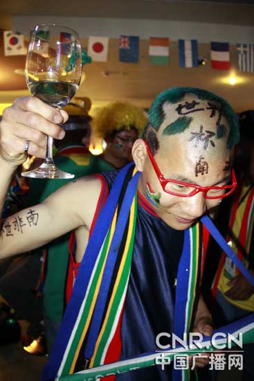 瘋狂的球迷,瘋狂的發(fā)型(記者吳菁 拍攝)