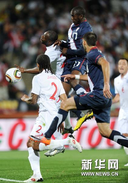 6月12日,英格蘭隊球員杰拉德(中)攻入一球后與隊友慶祝。當日,在勒斯滕堡舉行的2010年南非世界杯C組比賽中,英格蘭隊以1比1戰平美國隊。新華社記者郭勇攝