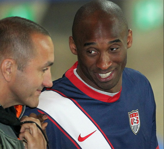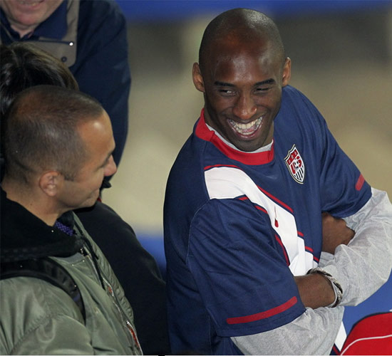6月27日,世界杯1/8決賽第二場,美國對陣加納。NBA湖人隊球星科比-布萊恩特來到南非現場為美國隊助威,科比還特意身穿了美國男足的球衣。