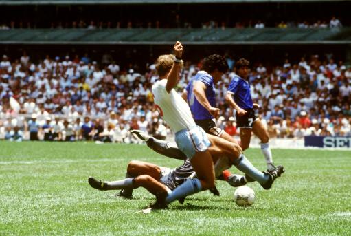 阿根廷隊與英格蘭隊之戰進行到第55分鐘時,馬拉多納的雷霆一擊將比分改寫為2∶0。當時他在本方半場接到隊友的傳球后,先是就勢往回一趟閃過了比爾茲利的阻截,隨后以嫻熟的拉球轉身技術突破了雷德的貼身緊逼。在獲得了足夠的控球空間后,馬拉多納在貼近右邊線的狹長區域施展開了自己千里走單騎的功夫:憑借著那只出神入化的左腳,馬拉多納以跨步與碎步相結合的外腳背高速盤帶令英格蘭隊后衛無所適從。在銜枚疾走的過程中,他的外腳背變線輕盈地掠過了猝不及放的芬維克,布徹的迅速補防也被阿根廷人以一個內切從容晃過。眼見著馬拉多納已突破至禁區,英格蘭隊門將希爾頓只能選擇棄門出擊,但他的孤注一擲依然沒能將球從馬拉多納腳下截獲。突破了對手最后一道防線后,馬拉多納在回追不舍的芬維克倒地鏟斷前果斷出腳,皮球如炮彈一般呼嘯著竄入了英格蘭隊球門。當這粒史詩般瑰麗的魔幻進球誕生之后,阿茲臺克體育場的近115000名球迷簡直不敢相信他們的眼睛。