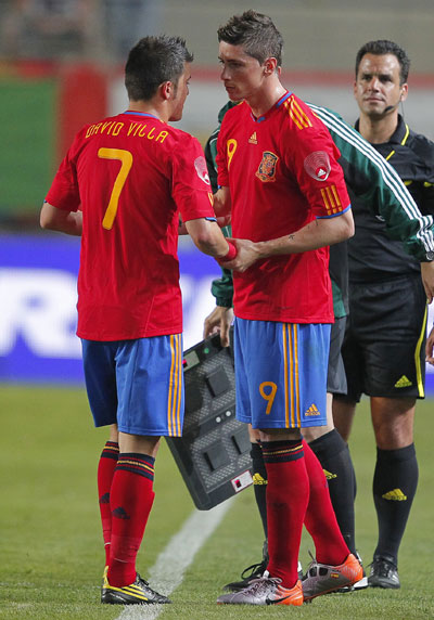 對波蘭的比賽,托雷斯還在替補席上等待了一個多小時,最后,博斯克終于決定將他派遣上場,托雷斯上場時,獲得了全場球迷熱烈的歡呼聲。托雷斯換下的是比利亞,博斯克似乎有意不讓他們同時上場,因為老帥不希望看到球隊的控球打法遭遇阻礙。進(jìn)球需要很多人的努力,但最后只能由一人來完成臨門一腳。